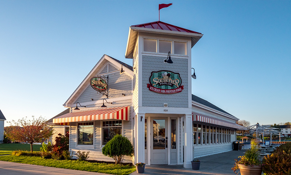 Located on Sheboygan’s South Pier, South Pier Parlor is a vibrant example of Hospitality Design in Sheboygan. As an ice cream parlor, the project required a unique approach that combined functionality for staff with a playful, welcoming environment for guests of all ages.